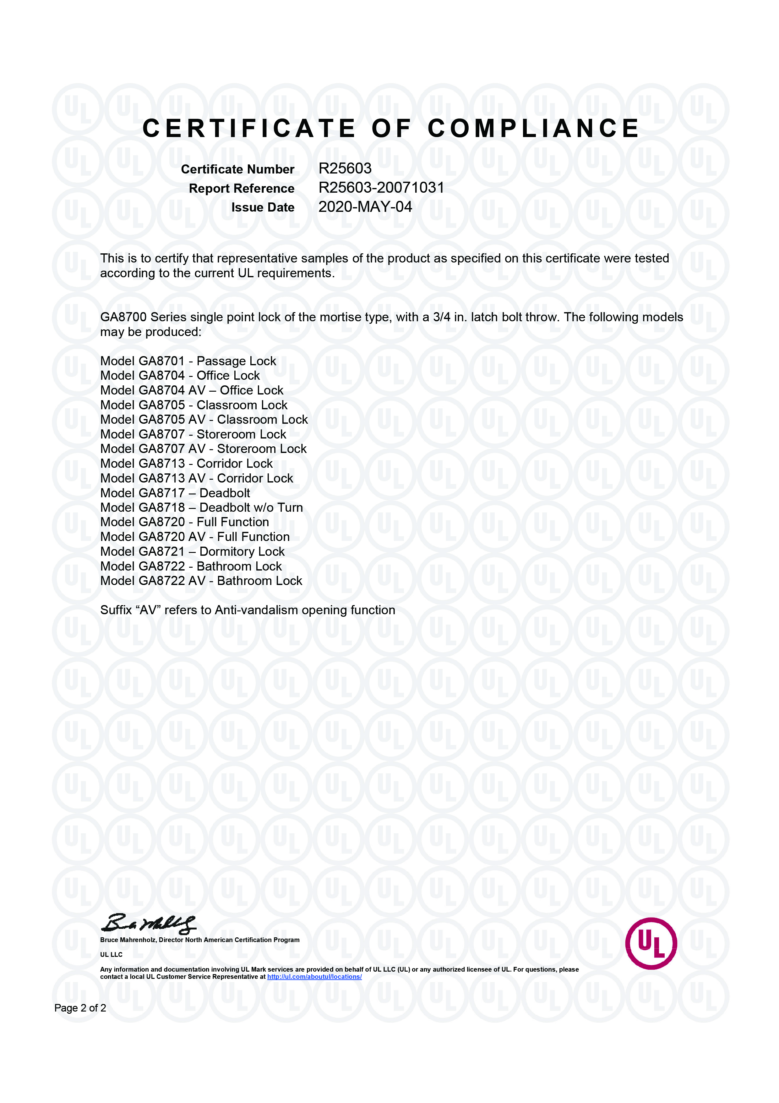 浙江堅(jiān)迪五金制造有限公司始建于 1995 年。自 2003 開始,公司致力于高標(biāo)準(zhǔn)商業(yè)鎖的研發(fā)工作,并于 2006 及 2007 年,8700 插芯鎖系列獲得美國(guó)國(guó)家標(biāo)準(zhǔn) ANSI A 156.13-2005 一級(jí)、ANSI A 156.2-2003 二級(jí)和美國(guó) UL 10C3 小時(shí)防火測(cè)試認(rèn)證。自 1998 年以來(lái),公司不斷提升產(chǎn)品和客戶服務(wù)品質(zhì),并獲得了 ISO 9001 的認(rèn)證。